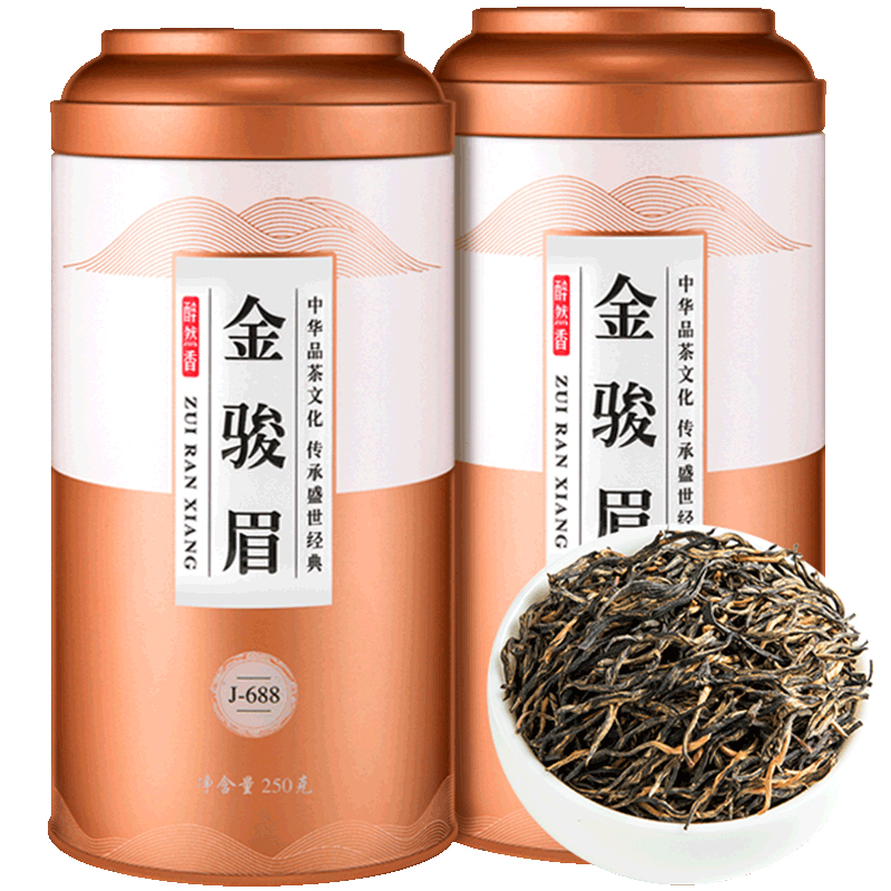 醉然香金駿眉茶葉特級正山小種祁門紅茶云南滇紅罐裝紅茶四寶組合125g*4罐